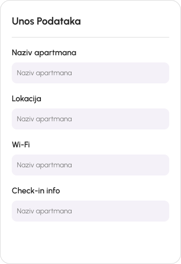 Ne, gost ne mora da instalira nikakvu aplikaciju niti da se registruje. Dovoljno je da skenira QR kod u apartmanu ili otvori link koji ste mu poslali, i sve informacije se odmah otvaraju u internet pretraživaču na telefonu. Ovo znači manje komplikacija za gosta i brži pristup svim bitnim informacijama.
